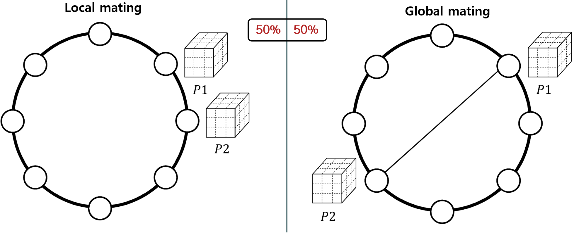 Result: Achieves faster convergence to low-energy states in 3D spin-glass systems through structured cross-environment mating.