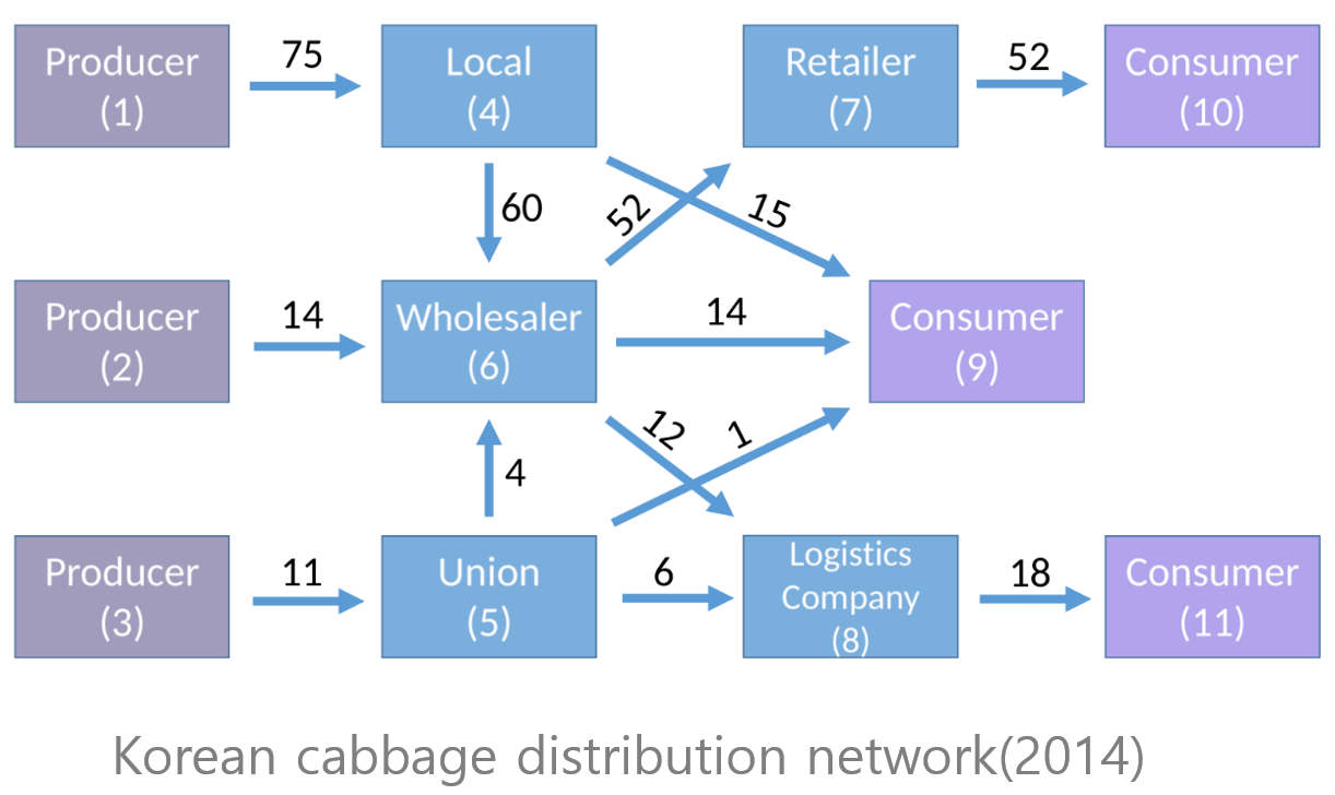 Method: A dynamic price-adjustment model applied to an empirical cabbage-flow network.